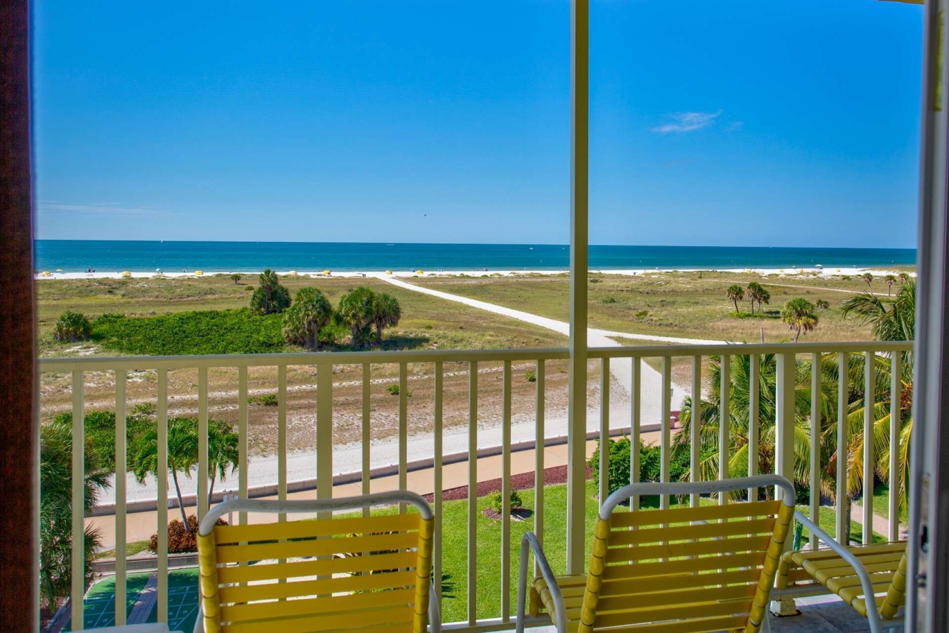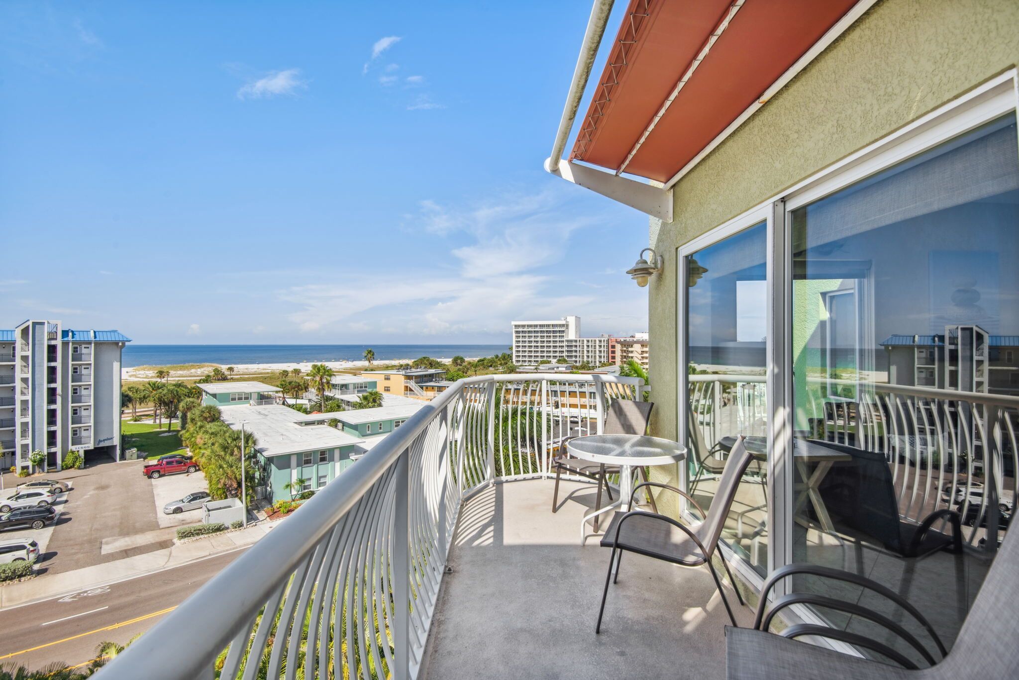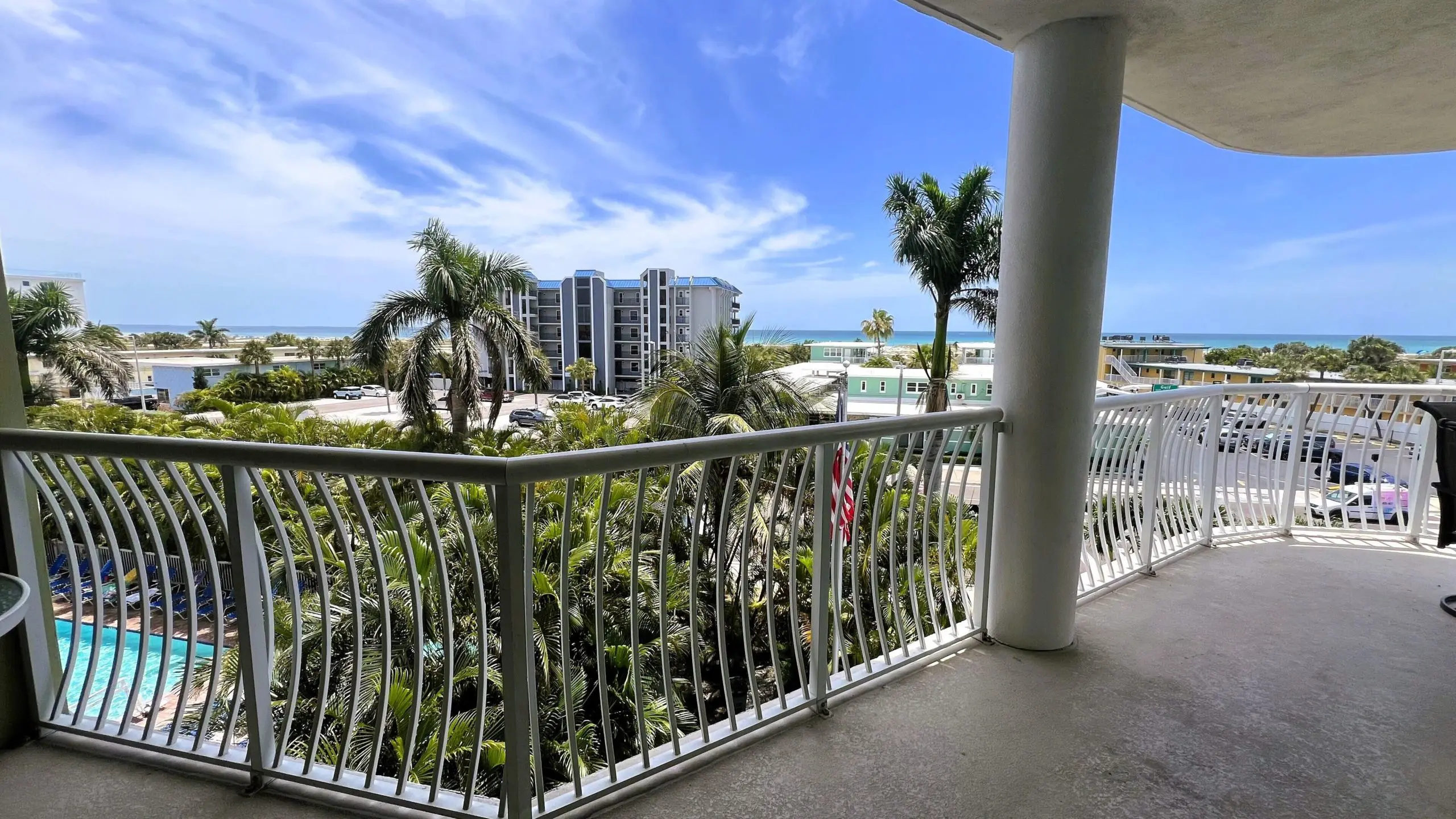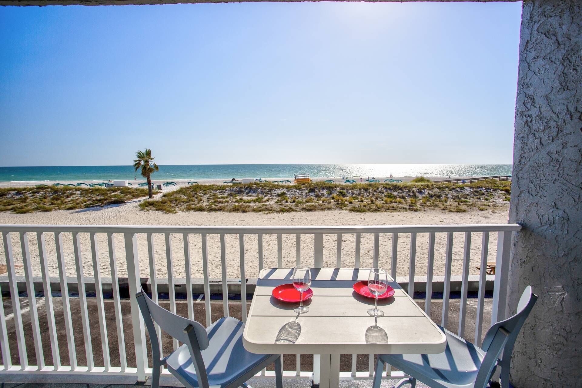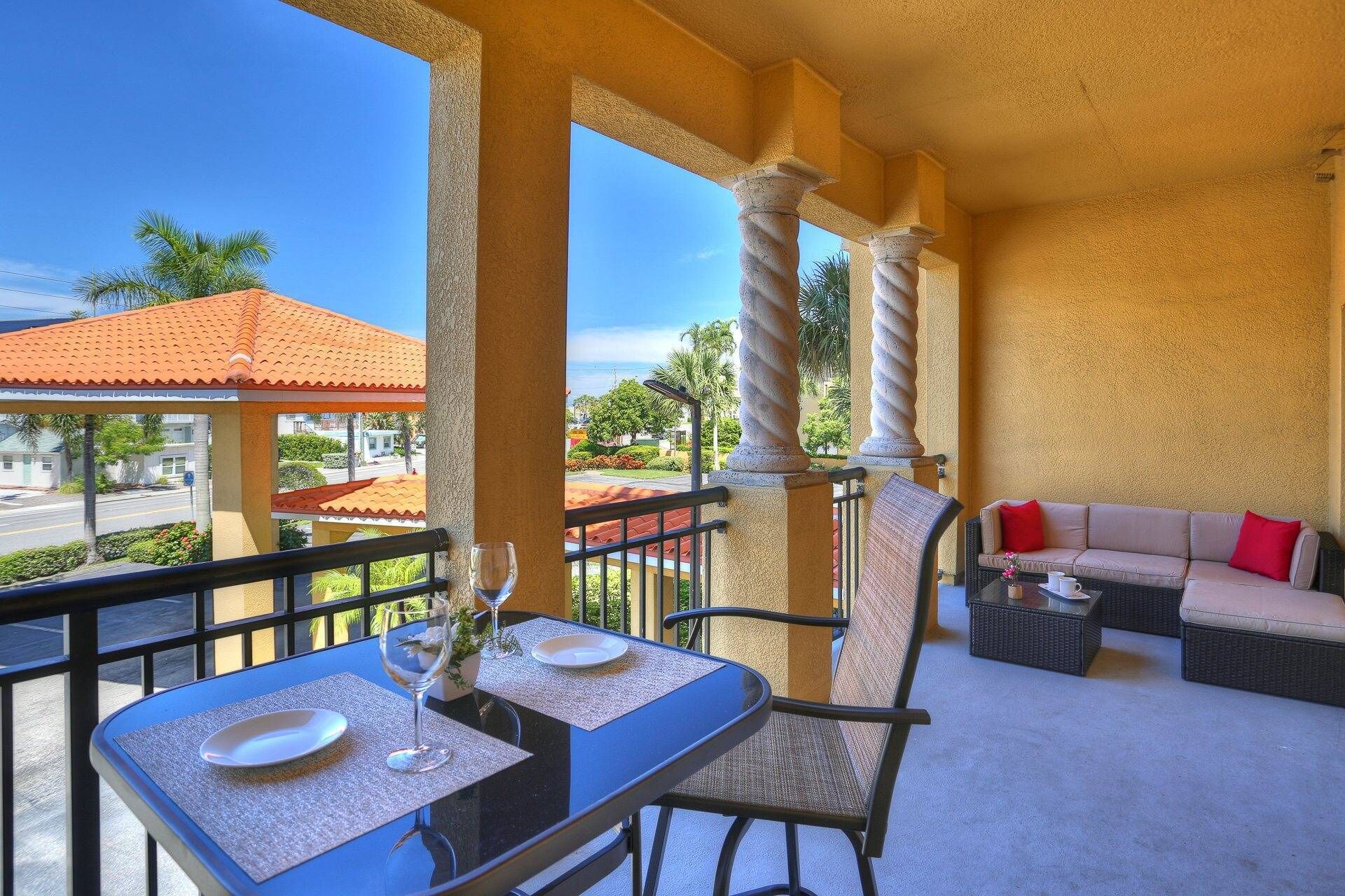 Welcome to “Beachview Klassic” – your best vacation ever in this UPDATED beautifully decorated 2-bedroom 2-bathroom condo at Crystal Palms Beach Resort conveniently located and nestled in the heart of Treasure Island, Florida with a TOP FLOOR balcony view of the Gulf. The ultimate vacation destination where you’ll enjoy ocean views, white sandy beach, breathtaking sunsets, and turquoise waters. The Crystal Palms complex has an outdoor heated pool and spa, with handicap friendly equipment to get into the water. Beach access is across the street directly in front of the complex – we count under 100 steps to sand!