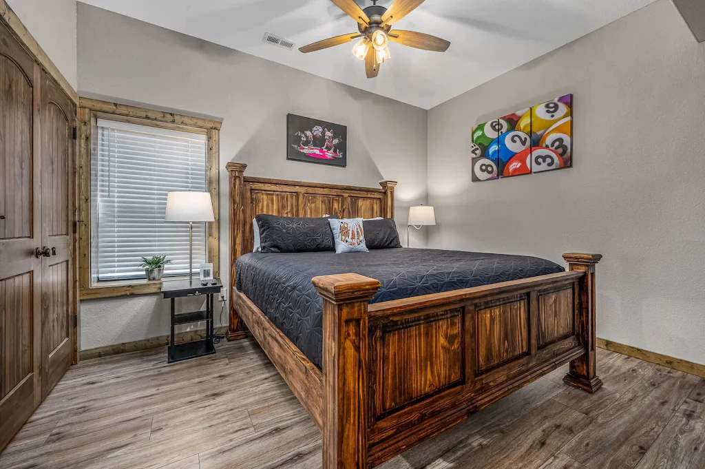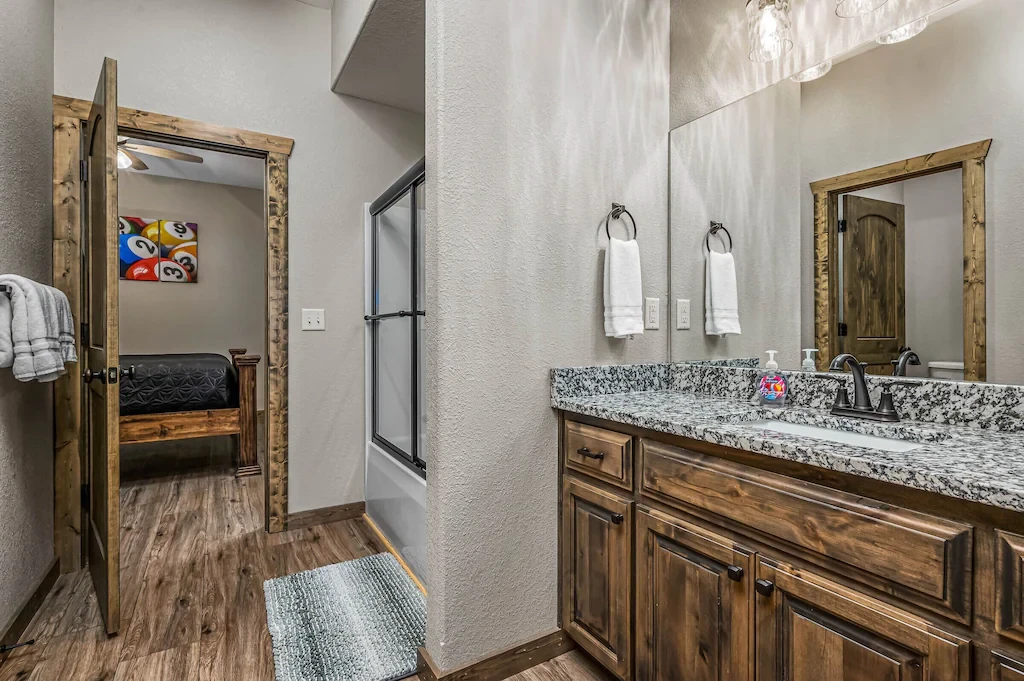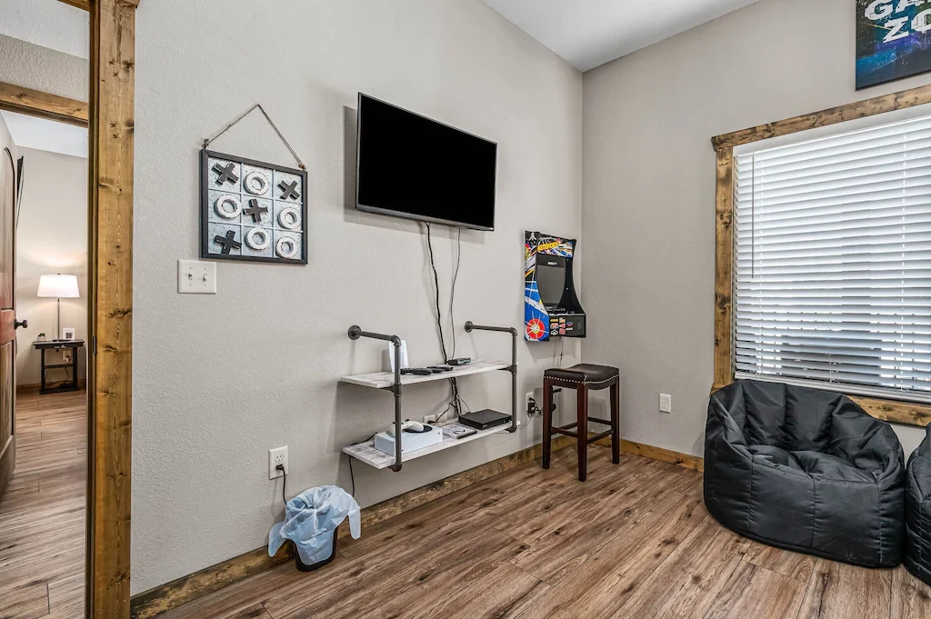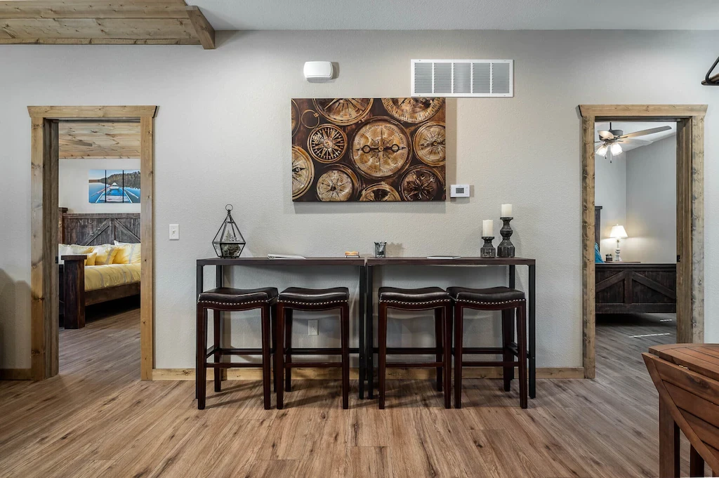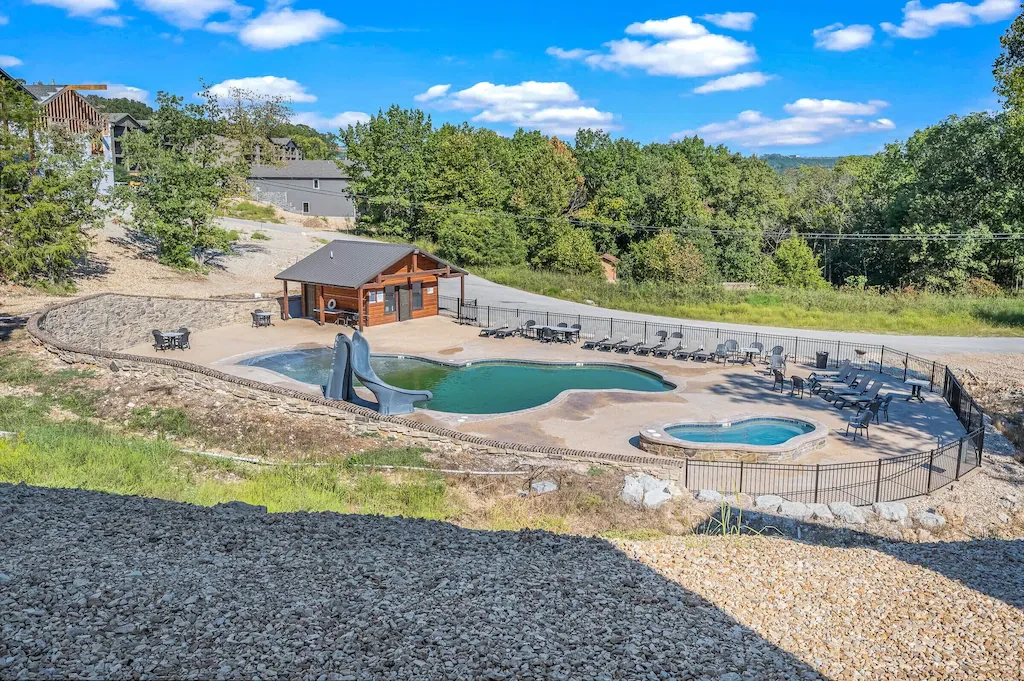 Look no further! You have found the perfect place for your next fun Branson getaway! Located in a premiere resort on Indian Point, Jax Klassic has an atmosphere ranging from Captain “Jax” Sparrow and other pirate and sea decor to Black “Jax” gaming options, and old fashioned “Jax” and other games. This cabin overlooks the community pool and hot tub and also has its own private hot tub on the back deck. Perfect for family gatherings or retreats. This is an ideal location on Indian Point, very close to Silver Dollar City-just 3 miles away. Ten minutes from the 76 Strip! Gorgeous 6 bedroom/ 4-1/2 bath cabin with soaring ceilings and an open floor plan and electric fireplace in the living area. This cabin features two decks with plenty of seating and will be perfect to watch the family enjoy the amenities at the resort. Your group will love the playful and entertaining interiors made to relax and enjoy. Boat slip is included FREE with this rental.