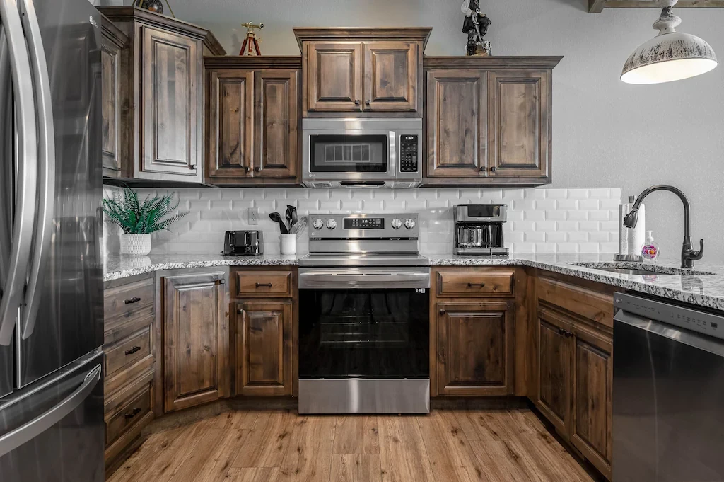 • Amenities include a fully equipped kitchen with granite countertops, free Wi-Fi, flat-screen cable TVs, central air conditioning and heat, pack-n-play, laundry machines, electric fireplace, gas grill on the covered private deck, and more!