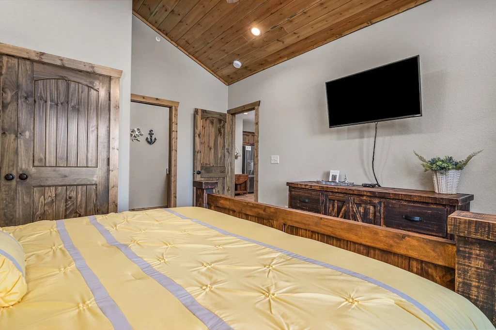This cozy cabin is ideally located right on Indian Point and the shores of Table Rock Lake! You are 4/10th of a mile from Indian Point Marina for renting a boat or jet ski. You can walk to the lake to fish and swim. You can even rent boat slips right on site!!
